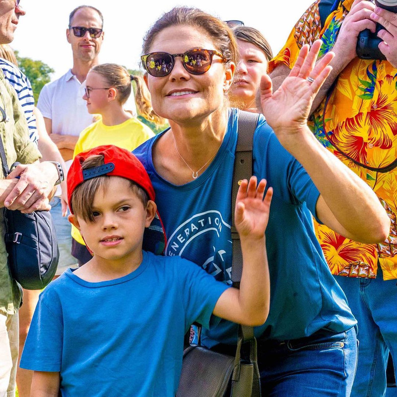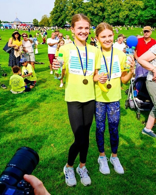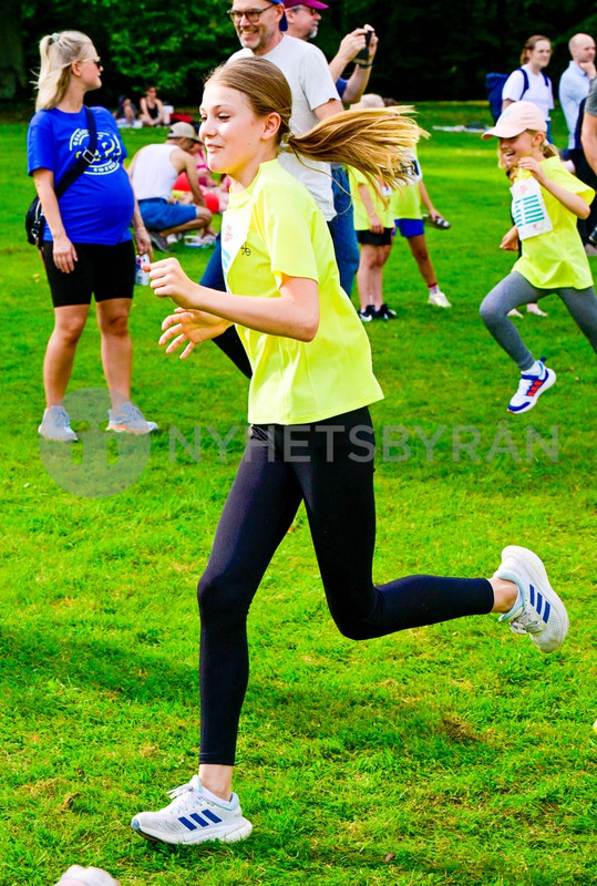 Estelle with her father doing Jumping Jacks at Generation Pep's "Up and Jump, Sweden" campaign.