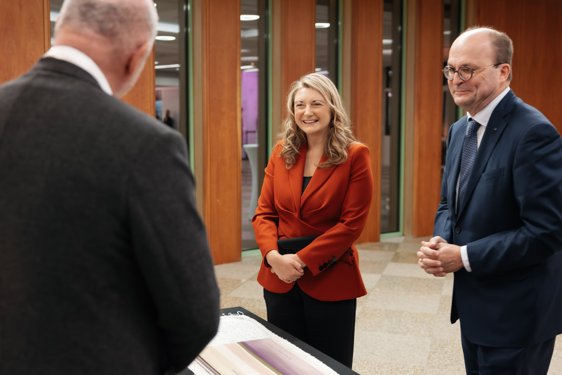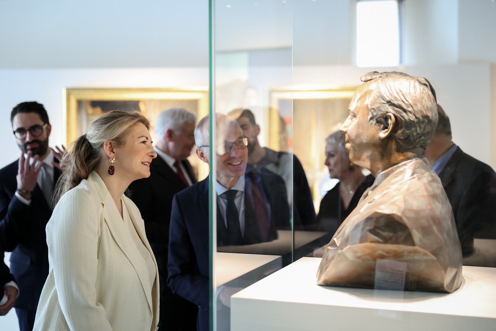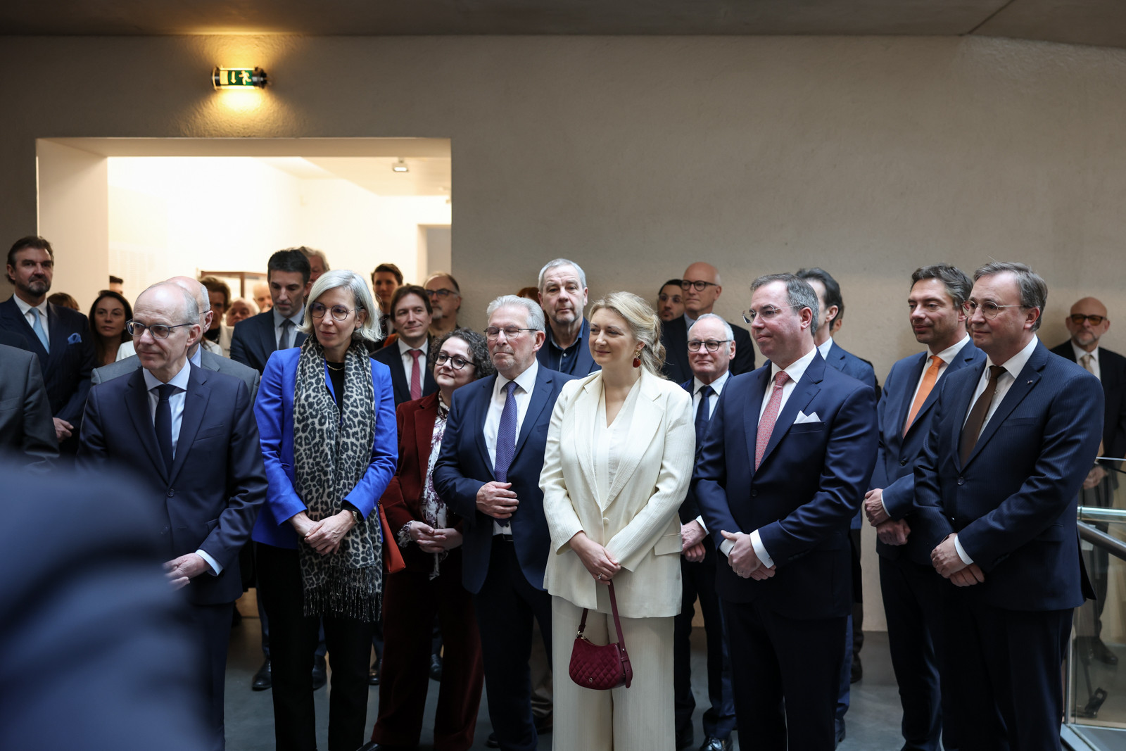 A lovely look in creme white for Stéphanie at the presentation of the Guillaume's bust and of the couple's official portraits today, January 15 (she had a fashion twin today, but that applies for the gentlemen's suits all the time..