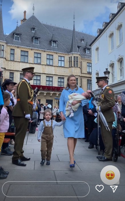 what catch my attention is behind them, Guillaume is carefully shielding little François from sunshine when Stephanie is holding him