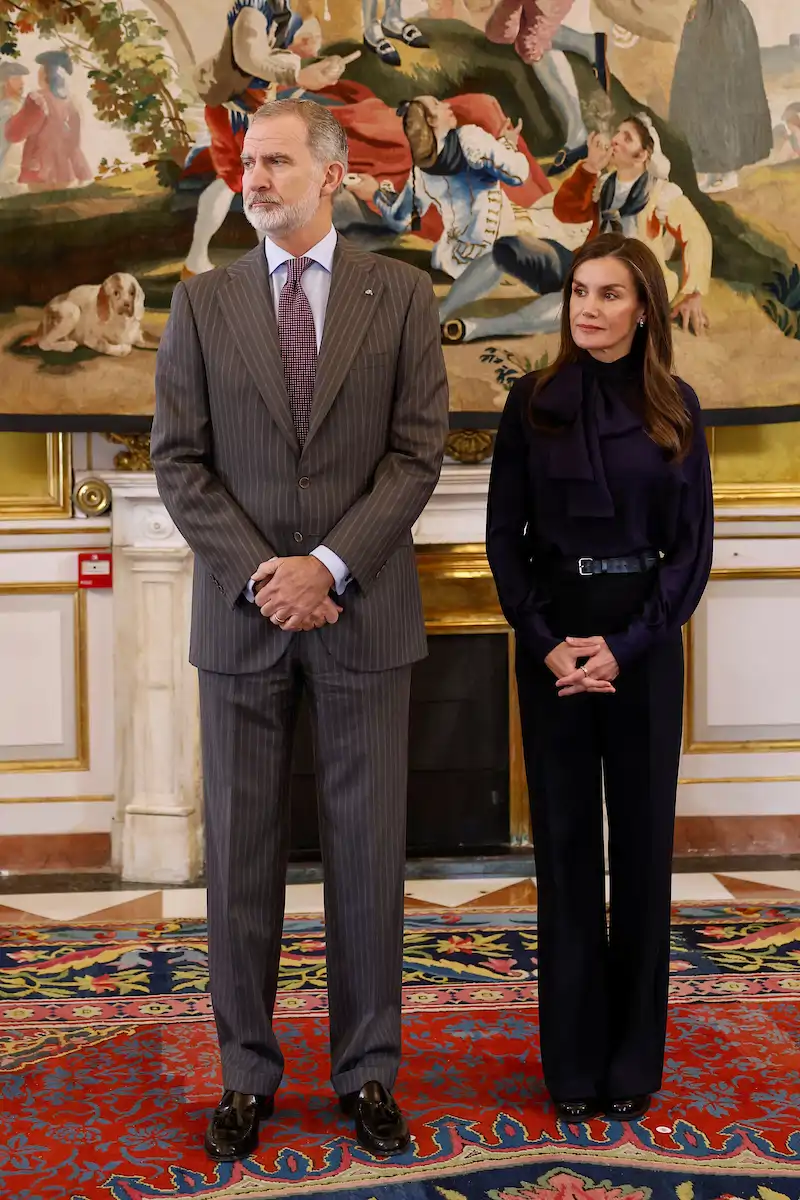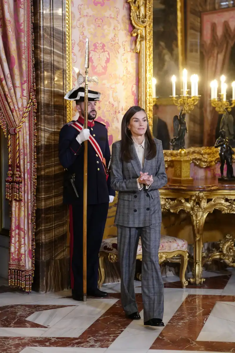 Queen Letizia during engagements today, December 3, wearing her red Mango jacket again: