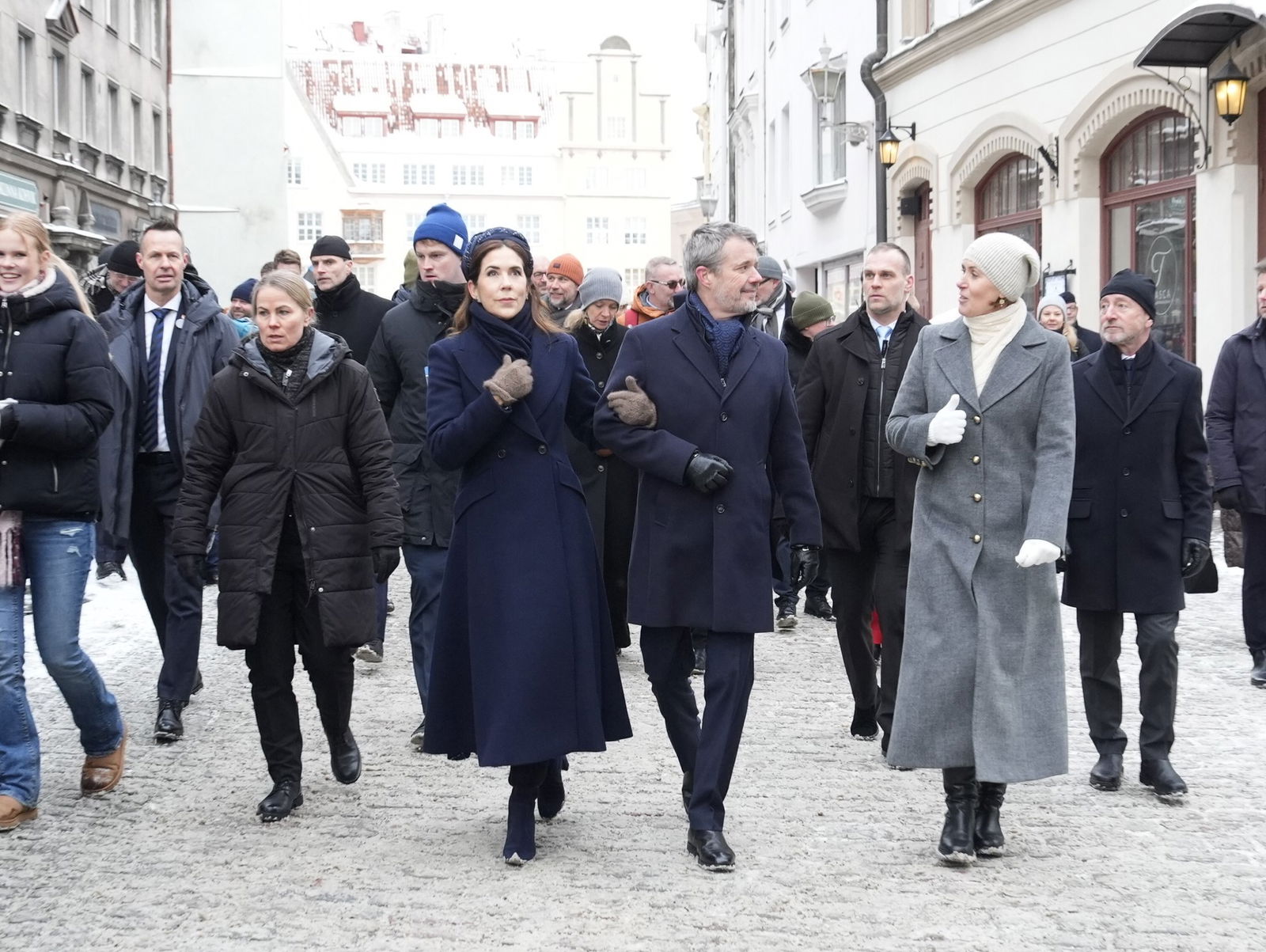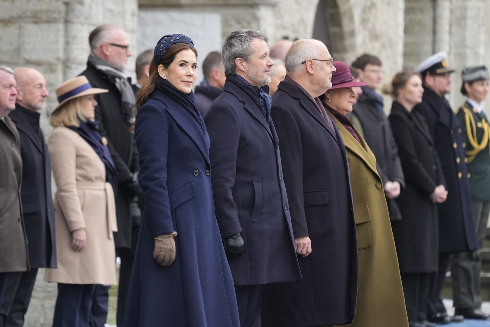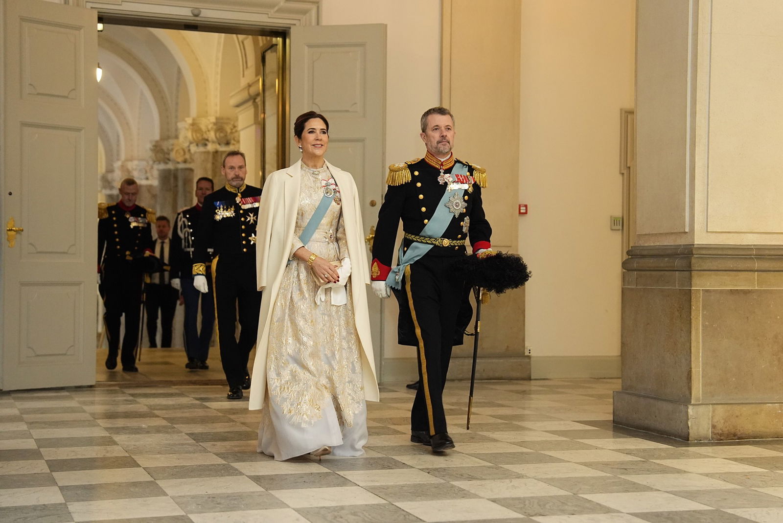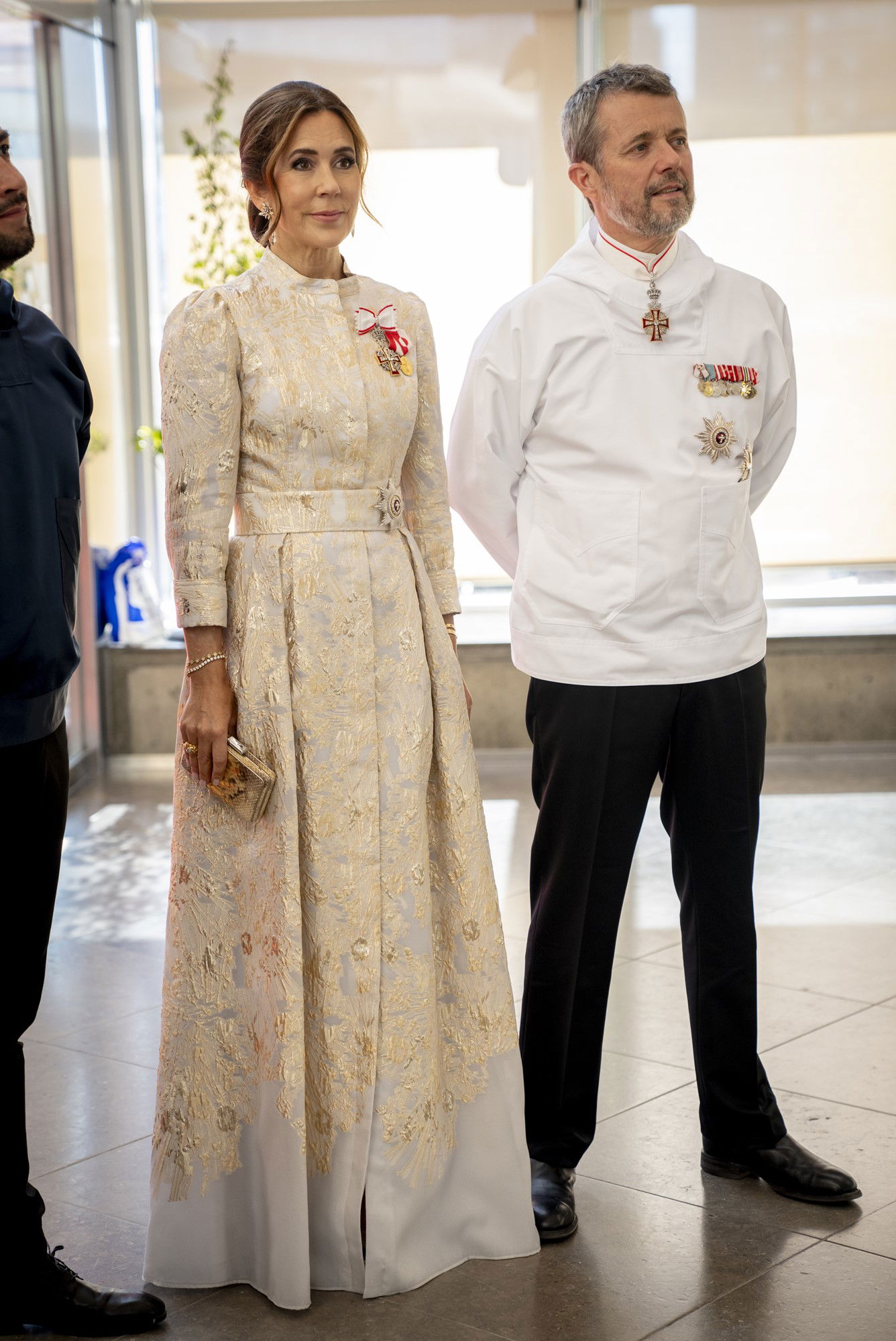 Mary beautiful in creme white today, January 6 - it's the beautiful dress she first wore in Greenland in 2024: