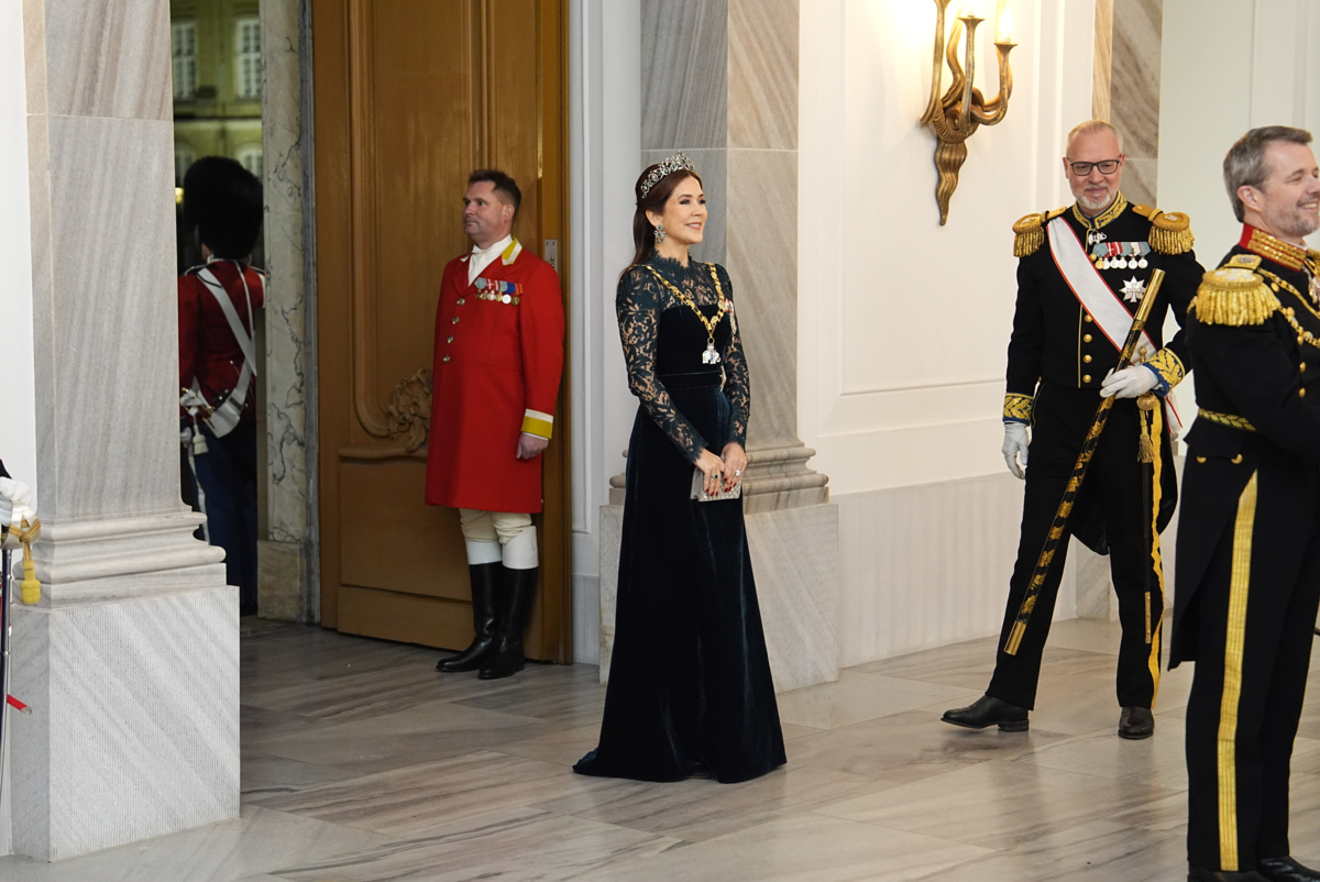 Queen Mary looking great at the state dinner for the state visit from Egypt this evening, December 6: