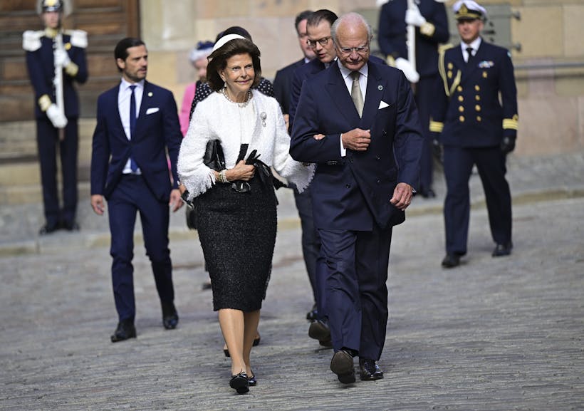 Queen Silvia at the traditional Enthusiast Vehicle Exhibition at Solliden yesterday. At this relaxed event she wore a bird dress from Camilla Thulin and looked lovely, her hair is nice in that way. Nice that both the Queen and Victoria wore a Camilla Thulin dress at yesterday's events.