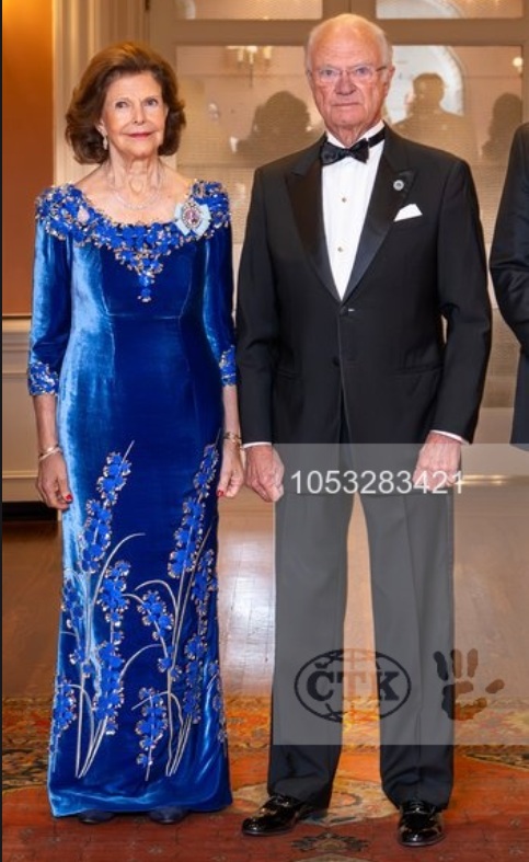 As it seems that Silvia recycles her evening gowns, it could be that a gown is perfect for the temperature at one venue, but somewhere else there is a need to add a shawl/cape, as at the Nobel Banquet this year. It's easier to add something when needed than to remove things. I haven't been at the Stockholm Concert Hall, but I've attended concerts in the Gothenburg Concert Hall, which has about the same amount of seats as there was at the Nobel Prize ceremony, and when a concert was sold out, it got very warm in there. I have visited the Stockholm City Hall, and the Blue Hall, and it's 22 metre up to the ceiling, and the floor area is 1500 square metre, so it could easily get a bit chilly sitting there during a long dinner.Noticed that too. Wonder why she had not gowns desgined who are more covered up and don't have so big necklines. And with warmer materials.